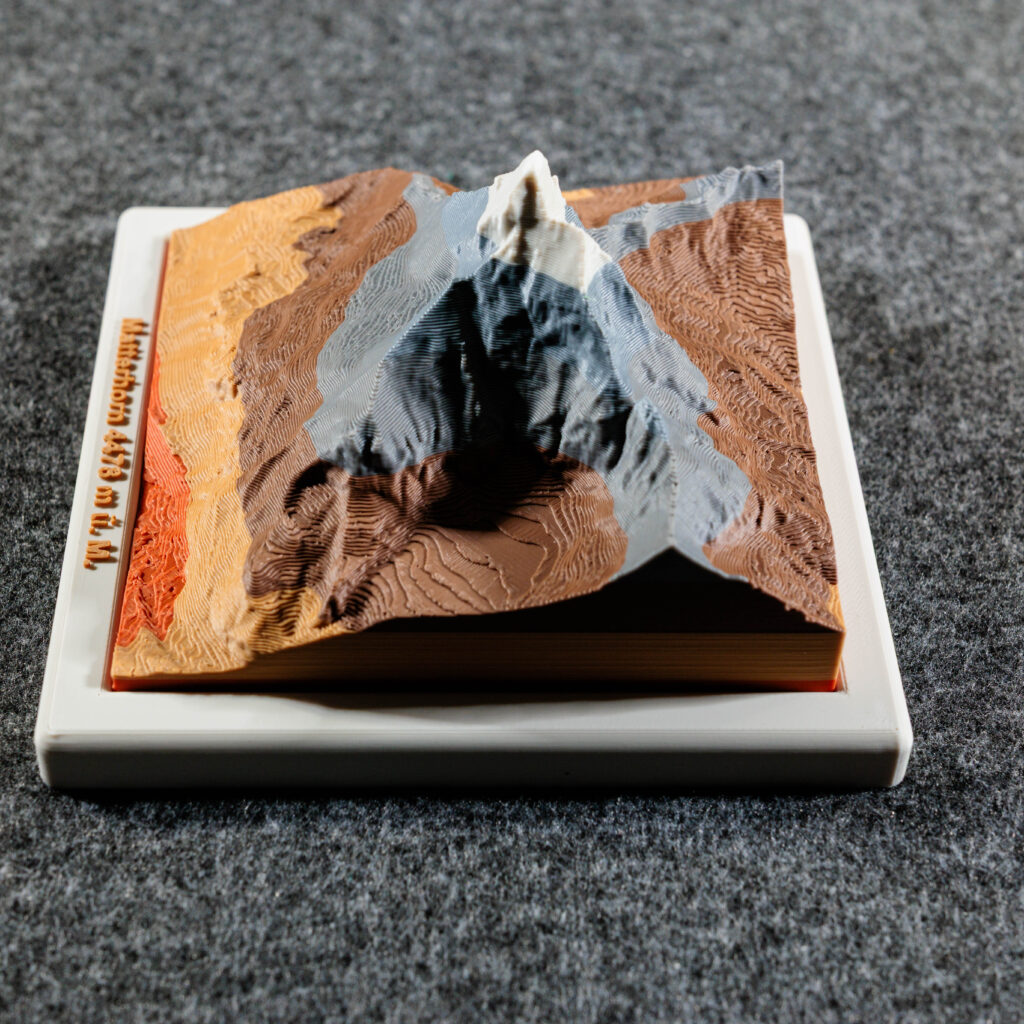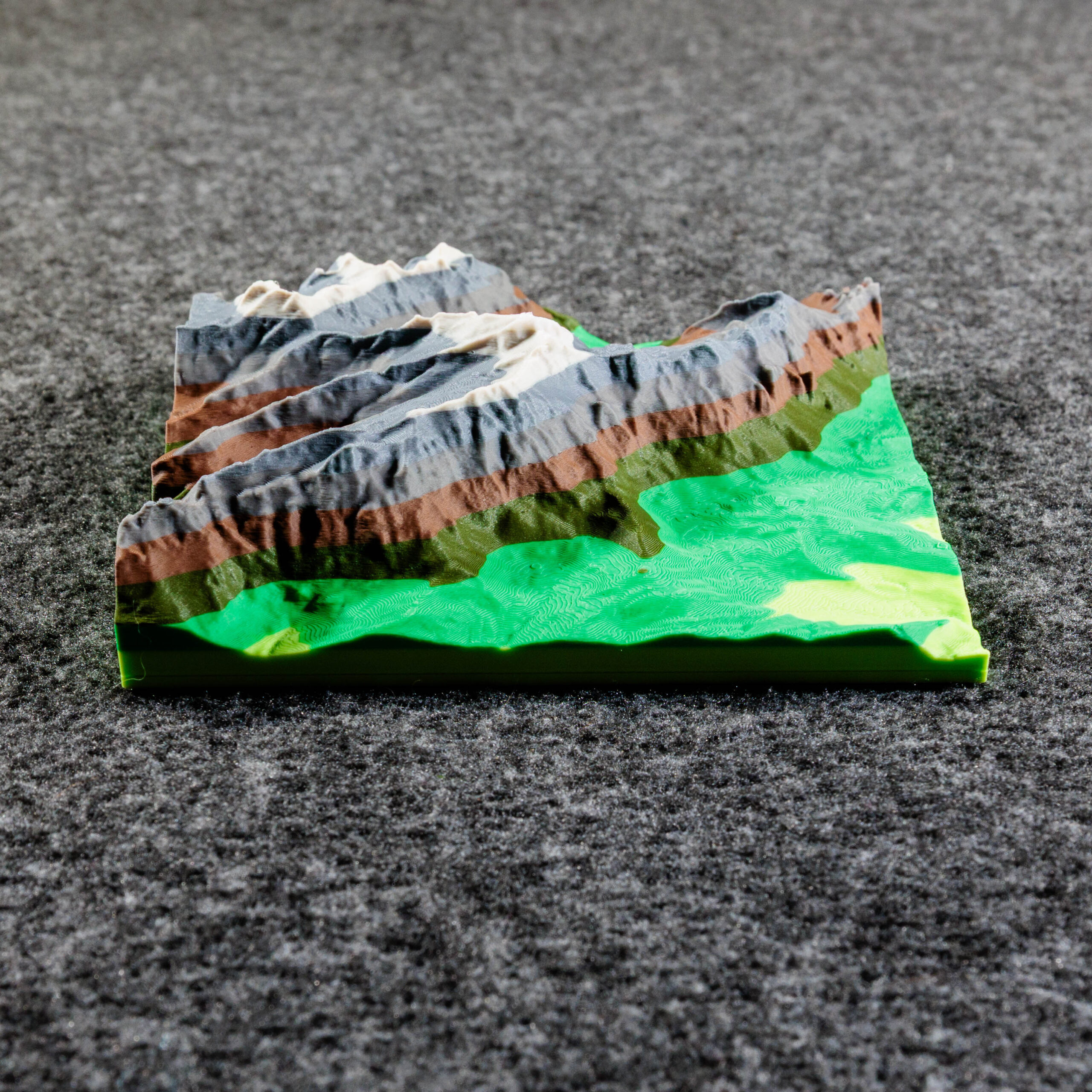 Studio Mayer erstellt per 3d Druck Geländereliefs & Höhenprofile aus topografischen Daten von markanten Geländeformationen für Wanderer, Bergsteiger, Mountainbiker und Tourismusregionen. Die Reliefs sind einfarbig oder mit bis zu acht Farben verfügbar.